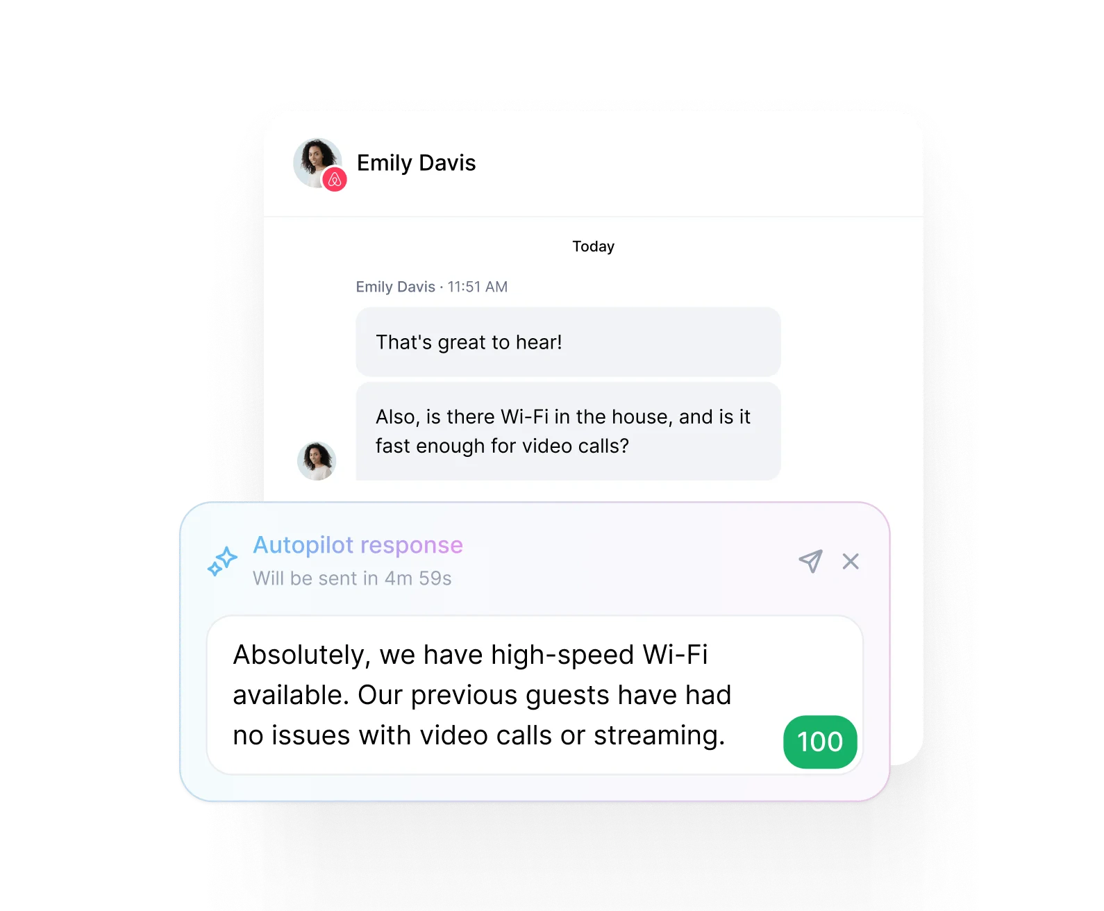 Turn on Autopilot to let AI handle guest messages for you. Autopilot works 24/7 and constantly improves. Autopilot smartly escalates questions to you as needed.
