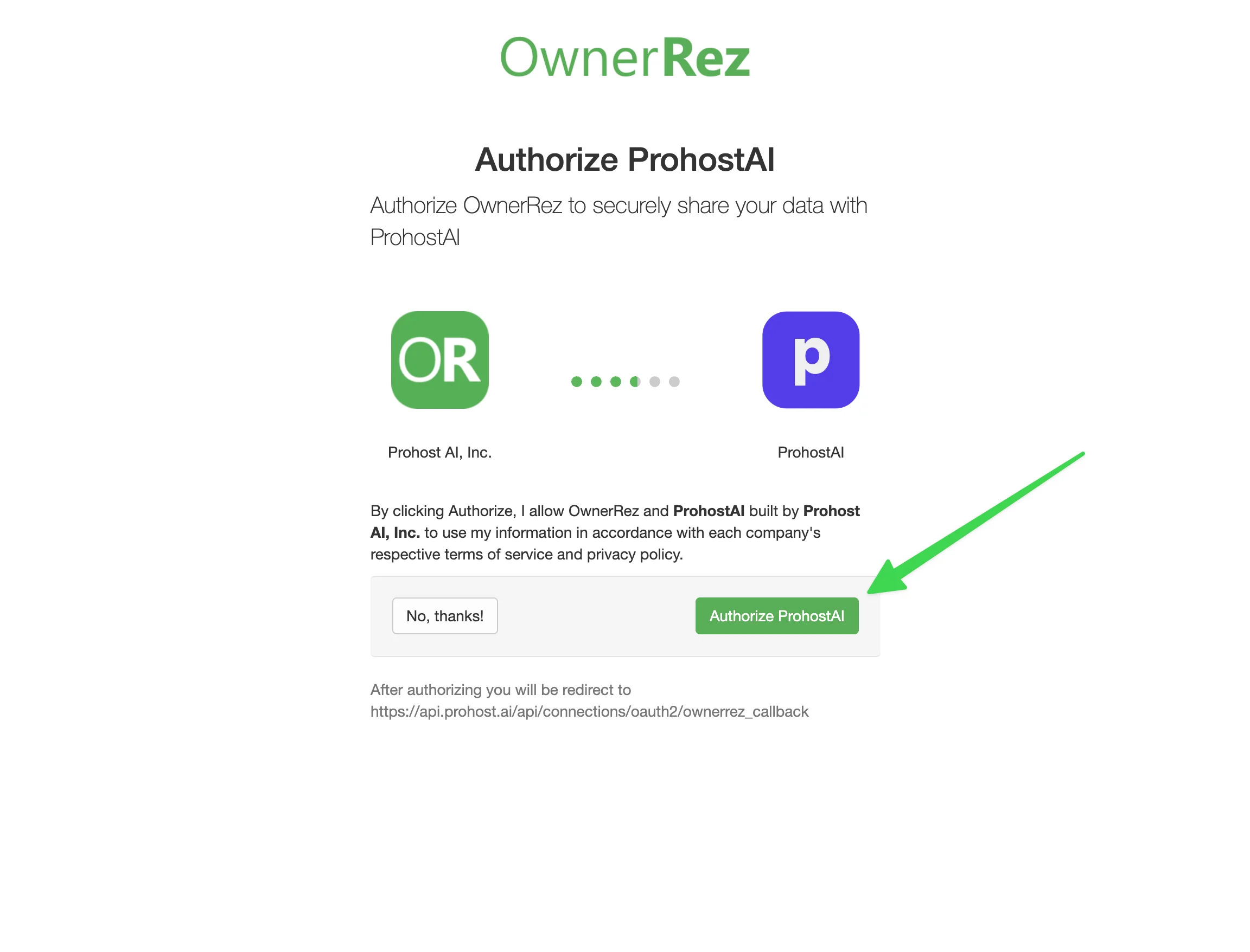 In the screen that pops up, click "Authorize ProhostAI".