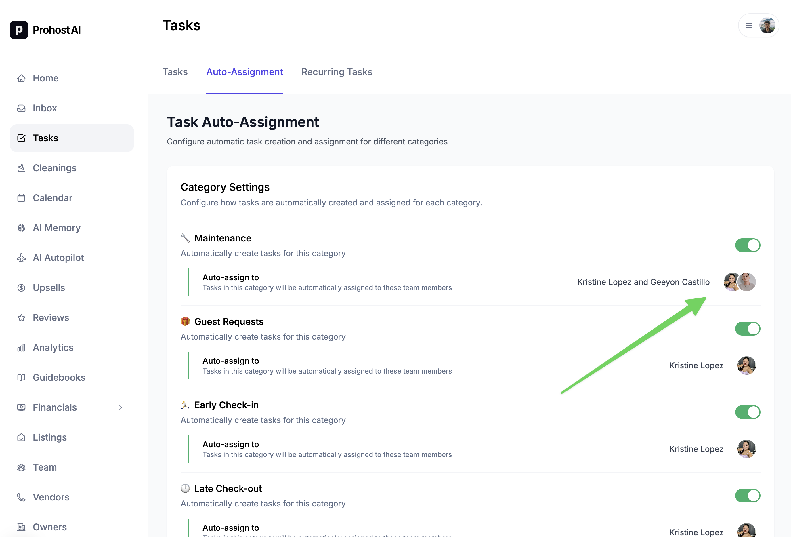 Automatically assign tasks by category & listing