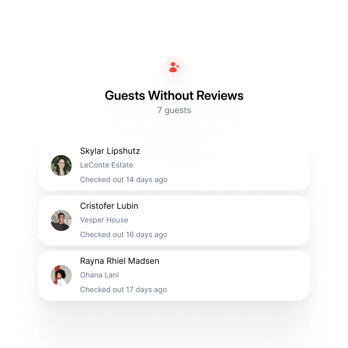 These guests recently checked out and their review window is still open. Stay informed so nothing catches you off guard.