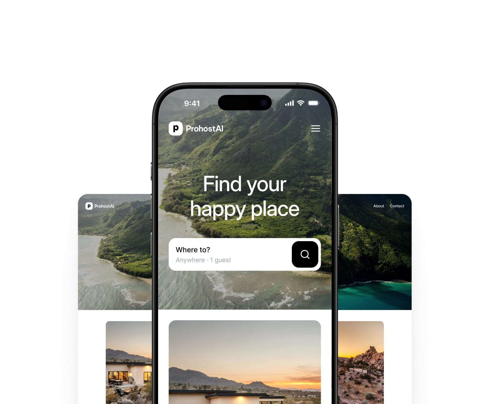 View your bookings, spot gaps, and keep track of cleaning or maintenance days — all in one clean, simple view on both web and the ProhostAI mobile apps on iOS and Android.
