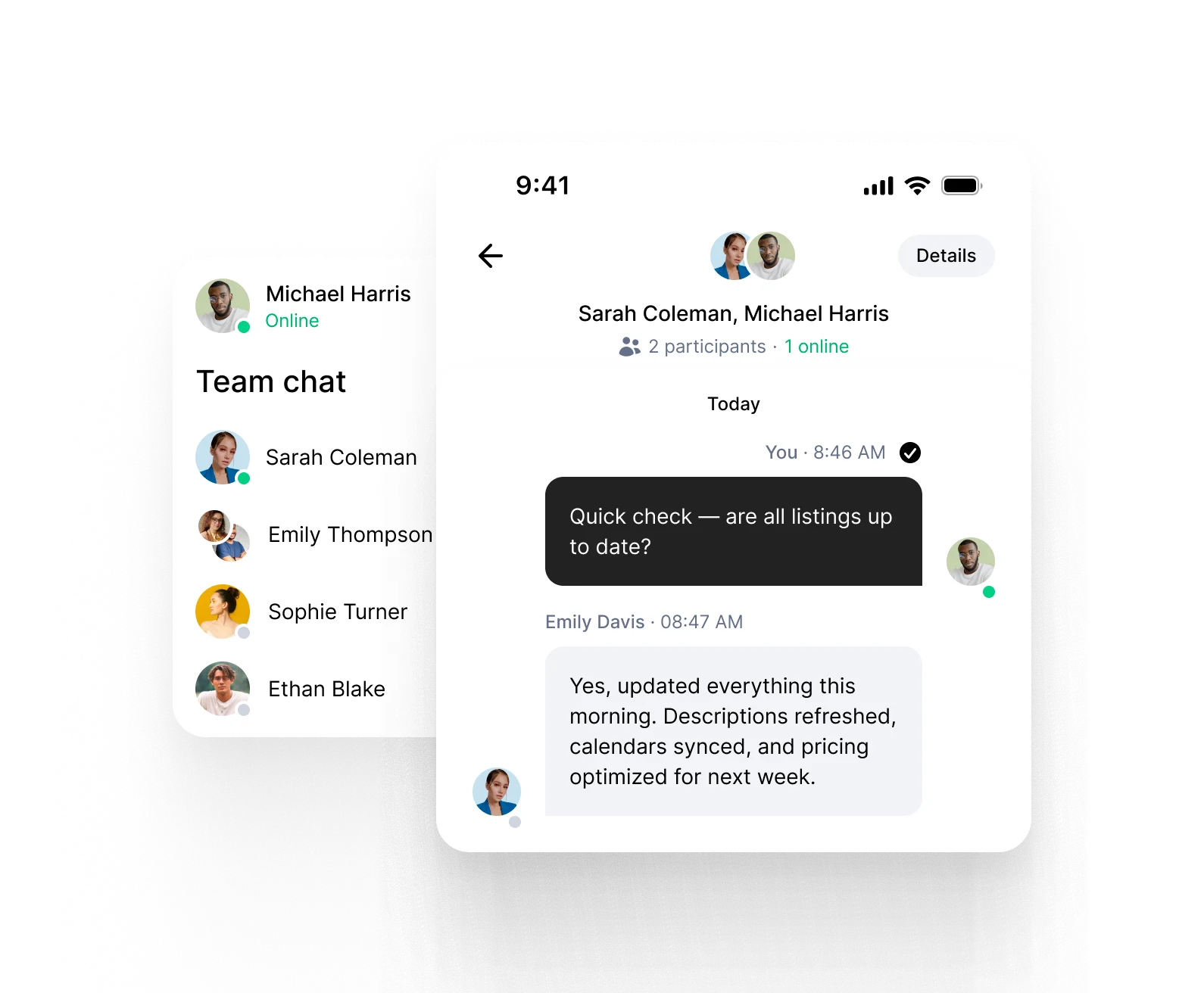 Manage your network of cleaners, maintenance teams, and vendors in one place.