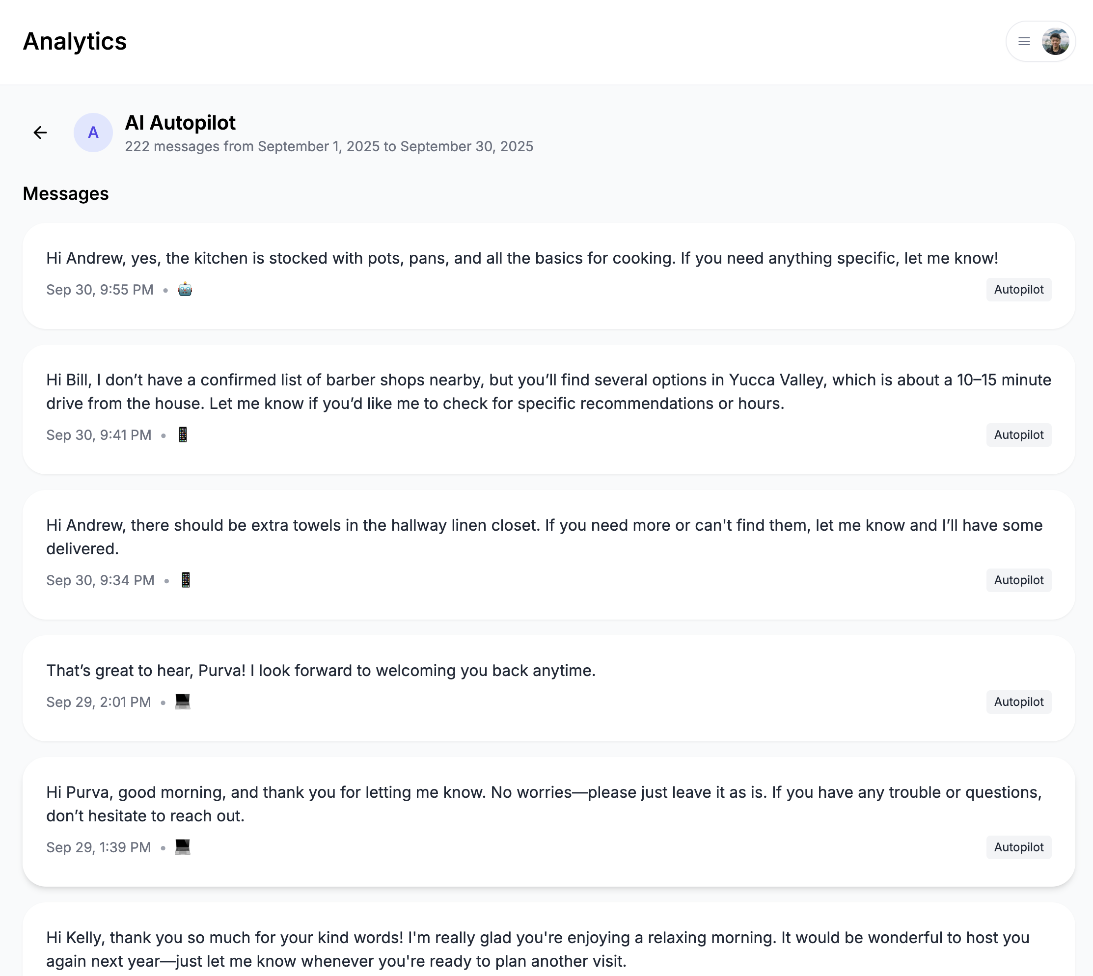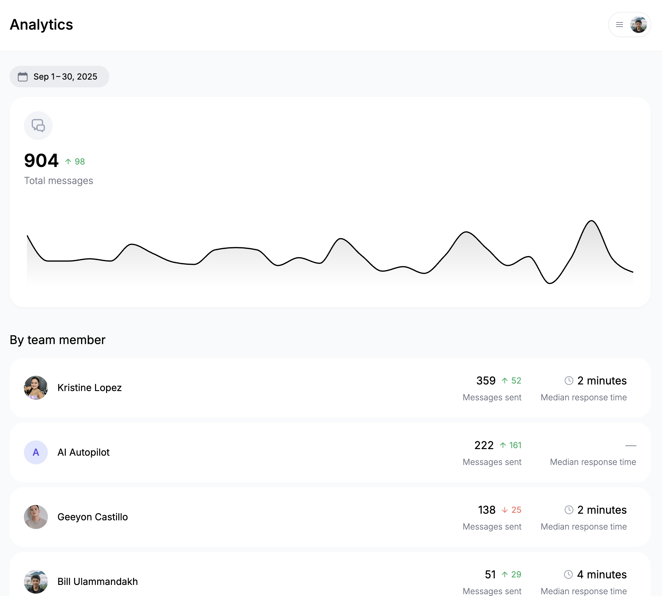 You can also view messages sent by team member. Autopilot sent messages are shown under "Autopilot".