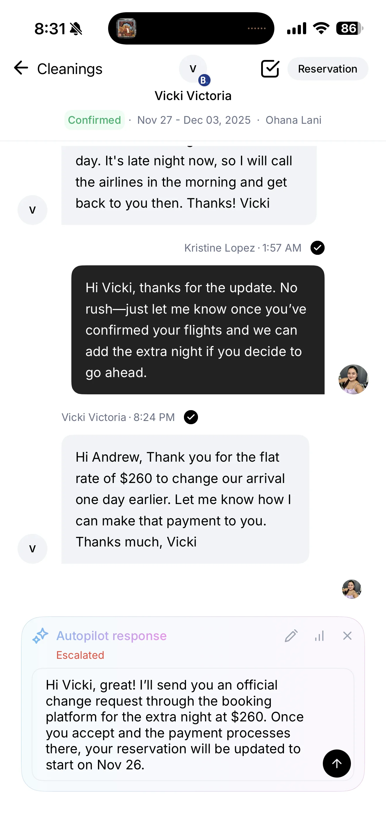 If Autopilot is not confident enough in its answer, it will escalate the message to you instead of responding. You will receive a push notification from the ProhostAI mobile app and your browser. Escalations look like this.