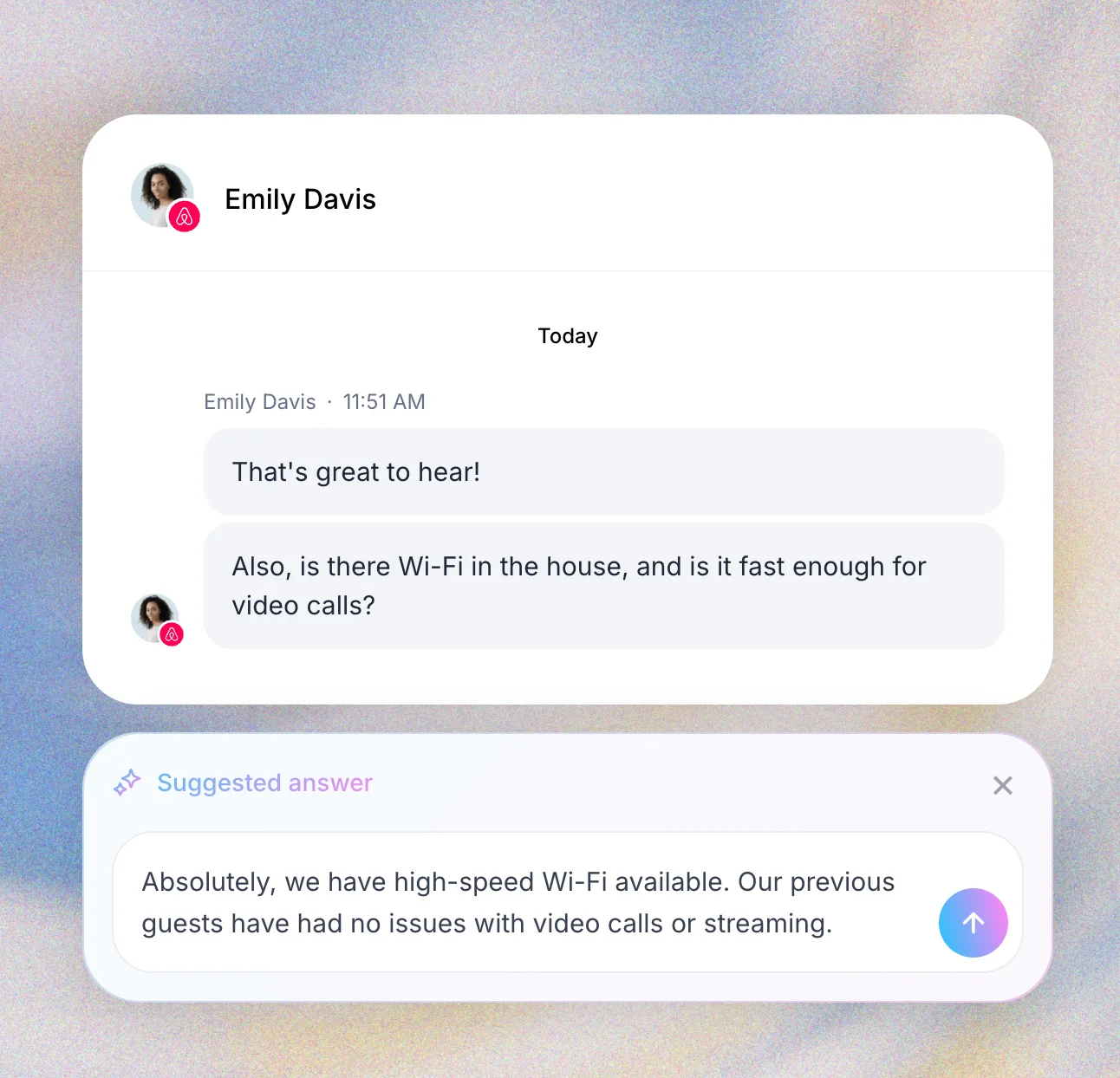 AI-powered replies help you respond to guest messages quickly and professionally. The AI analyzes each message and generates personalized responses that match your hosting style—saving hours of manual typing.