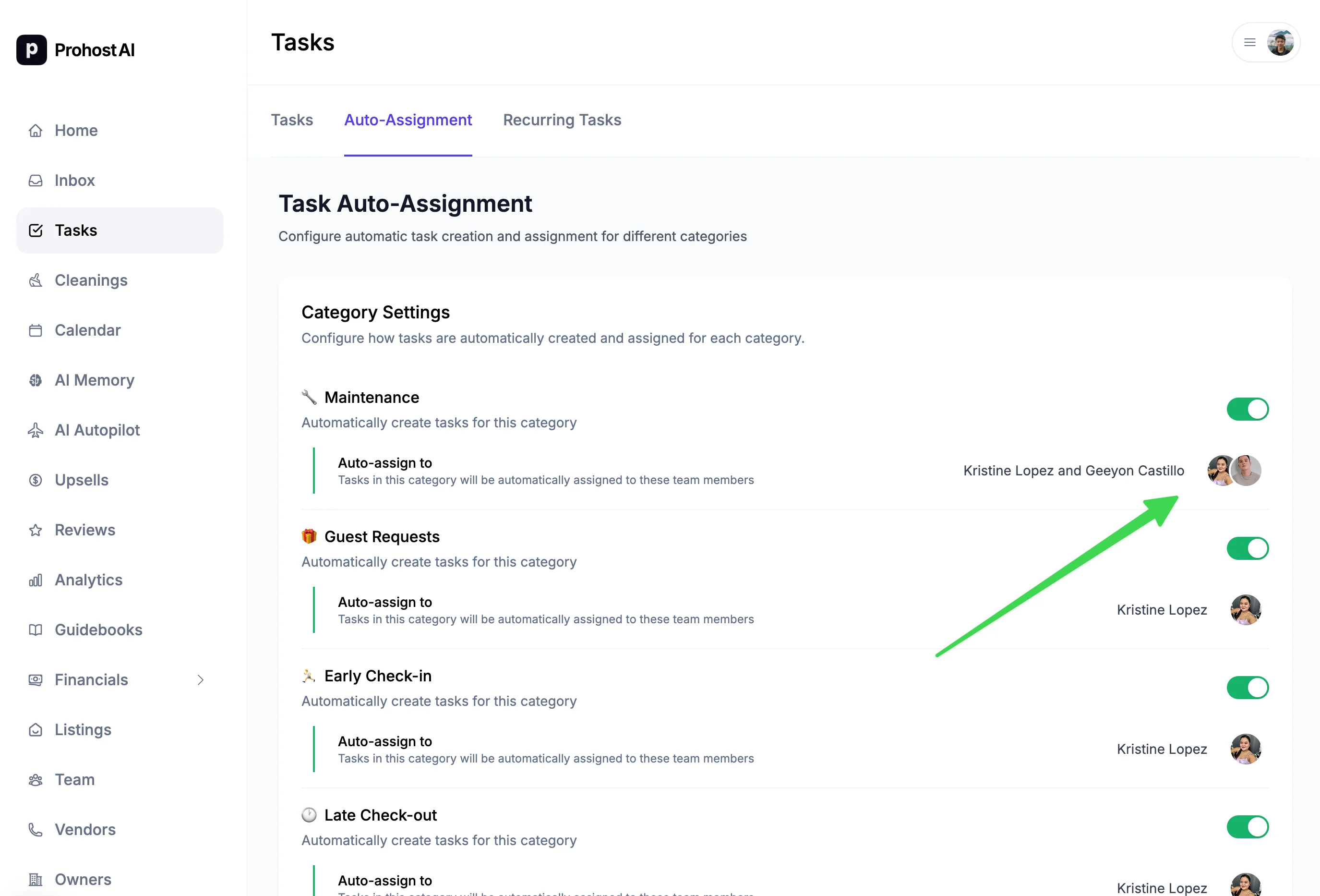 Automatically assign tasks by category & listing