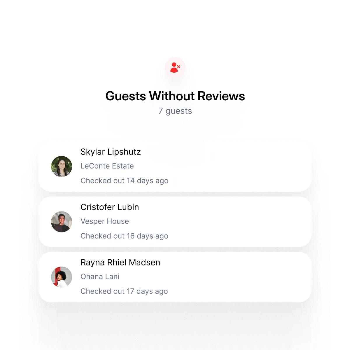 These guests recently checked out and their review window is still open. Stay informed so nothing catches you off guard.